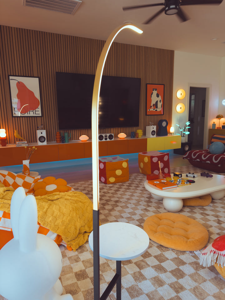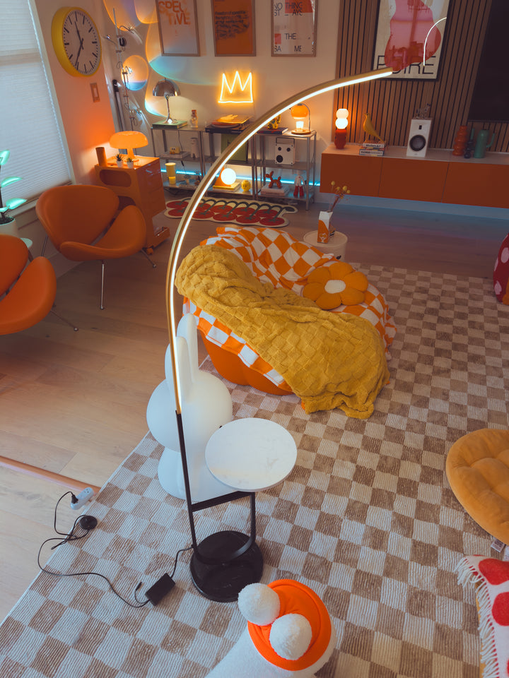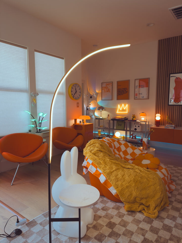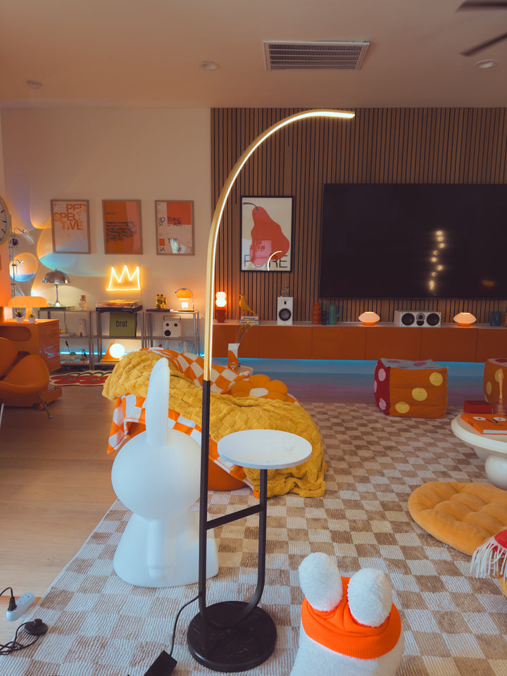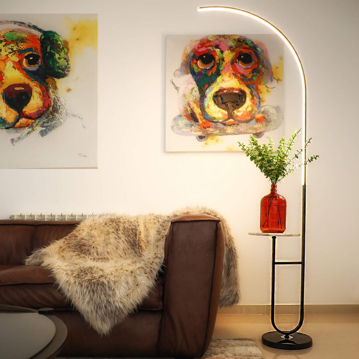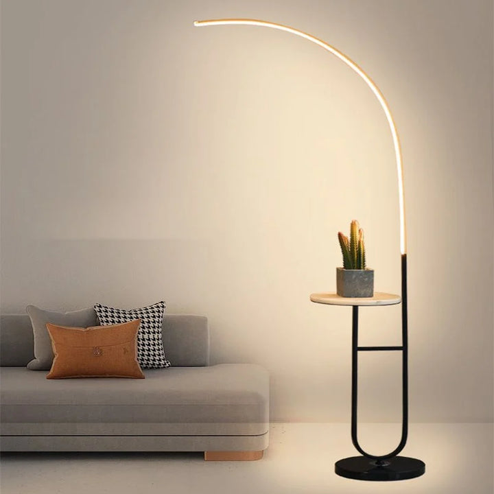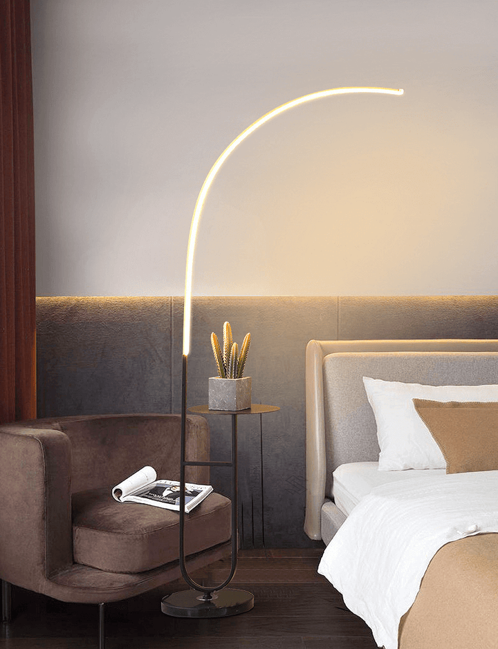 Enhance your space with the Crescenté Arc Floor Lamp, a perfect blend of style and functionality. Designed for modern living, this sleek lamp features a remote-controlled LED light with full dimming and adjustable color, ranging from warm white (3000K) to cool white (6000K). The smart memory function ensures your preferred settings are saved for effortless convenience. The built-in white marble tray adds a practical touch, ideal for holding books, remotes, or decorative accents. Paired with a sophisticated black marble base, this lamp offers both stability and elegance, seamlessly complementing contemporary interiors. Crafted for durability, the energy-efficient LED technology boasts an impressive 50,000-hour lifespan far exceeding traditional incandescent bulbs. Quick and hassle-free assembly makes setup a breeze, allowing you to enjoy premium lighting without the stress.