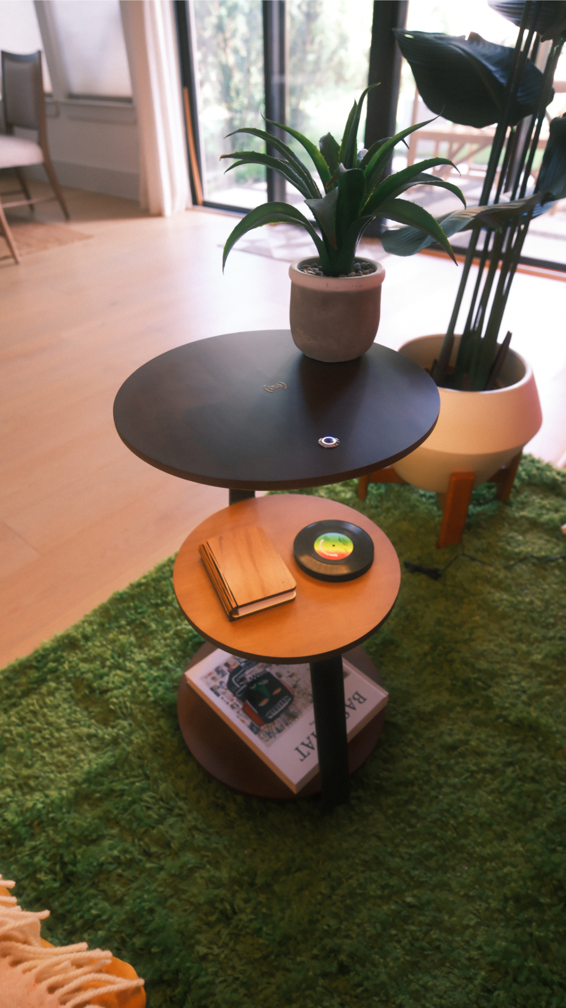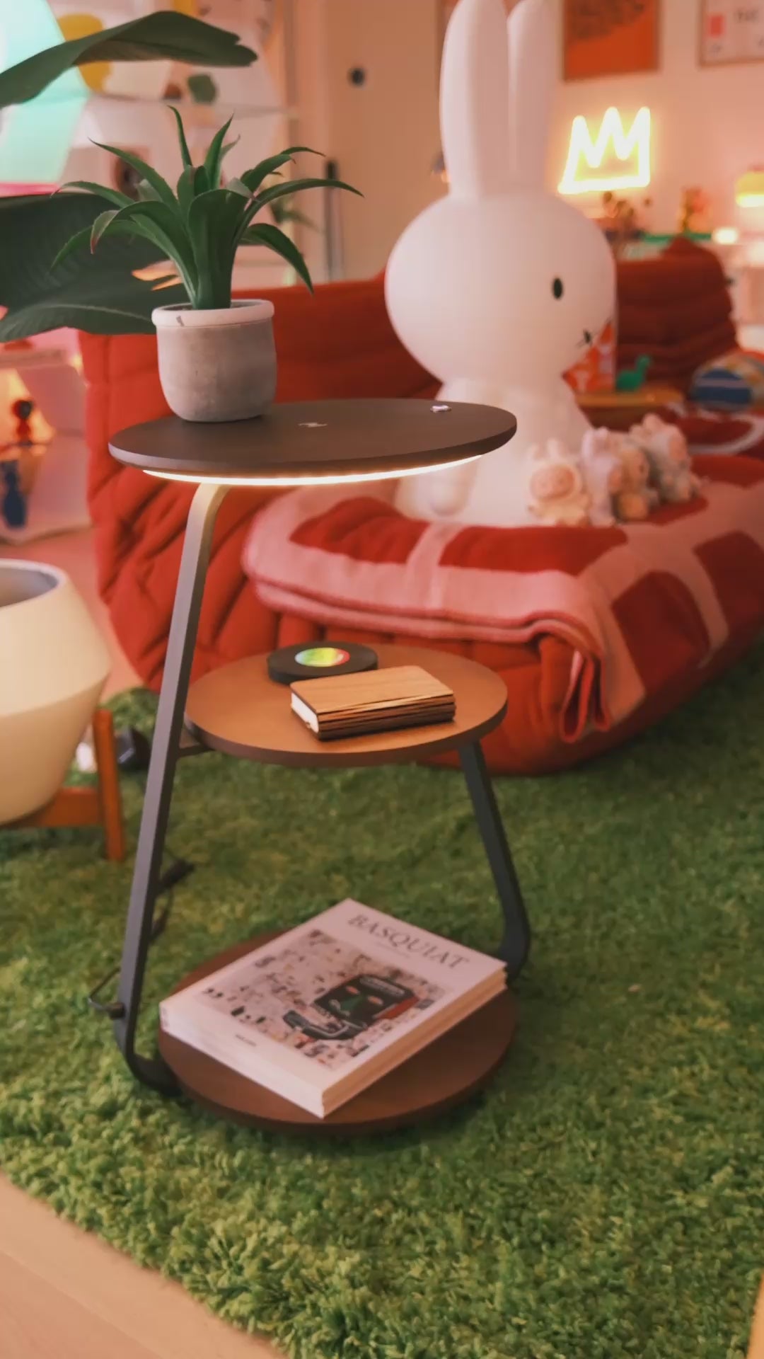 Elevate your bedroom with the Glownest Bedside Table, expertly combining modern design and practical functionality. Its distinctive umbrella-shaped iron frame enhances visual appeal, while the walnut wood surface and additional lower compartment provide ample storage options. Integrated LED lighting offers subtle illumination with easy touch control, creating a calming atmosphere. The built-in wireless charger on the tabletop streamlines your nightly routine by enabling convenient cord-free phone charging. This nightstand is thoughtfully designed to bring both style and efficiency to your personal space.