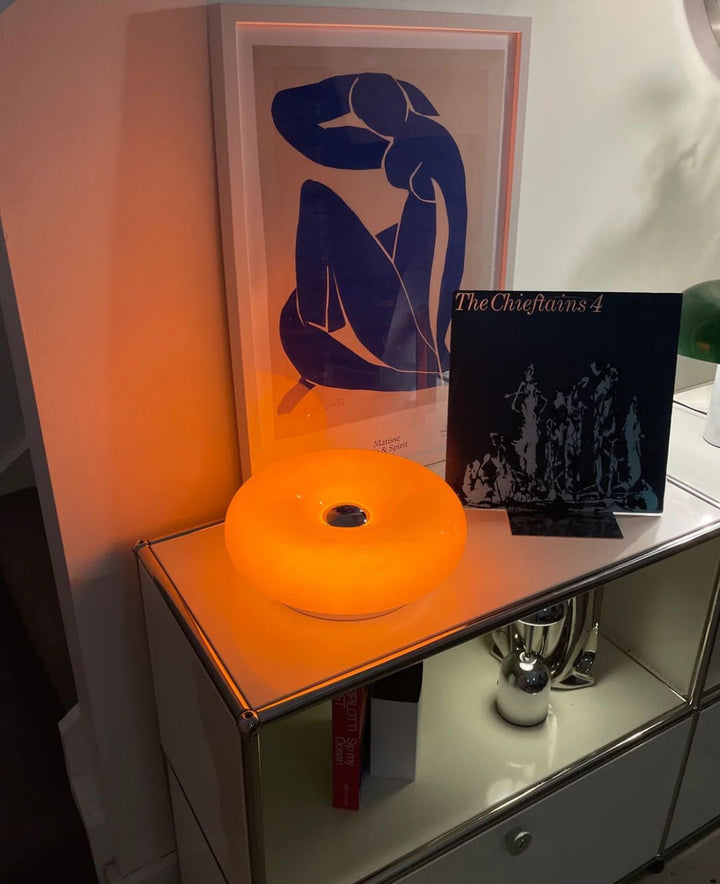 Add a bold retro-modern touch to your space with the Glownut Lamp, a vibrant orange glass light shaped like a glossy glazed donut. Designed for versatility, this unique lamp functions as both a table lamp and a wall-mounted fixture, allowing you to customize its placement to suit your décor. Whether displayed on a console or mounted on the wall, it casts a warm, ambient glow that enhances any room with a cozy yet stylish atmosphere. Crafted with high-quality glass, the Glownut Lamp is more than just lighting, it’s a sculptural statement piece that blends vintage charm with contemporary aesthetics. Its sleek, glossy finish reflects light beautifully, making it a standout addition to modern, eclectic, or retro-inspired interiors. Perfect for living rooms, bedrooms, offices, or creative spaces, this lamp effortlessly combines functionality and artistic design.